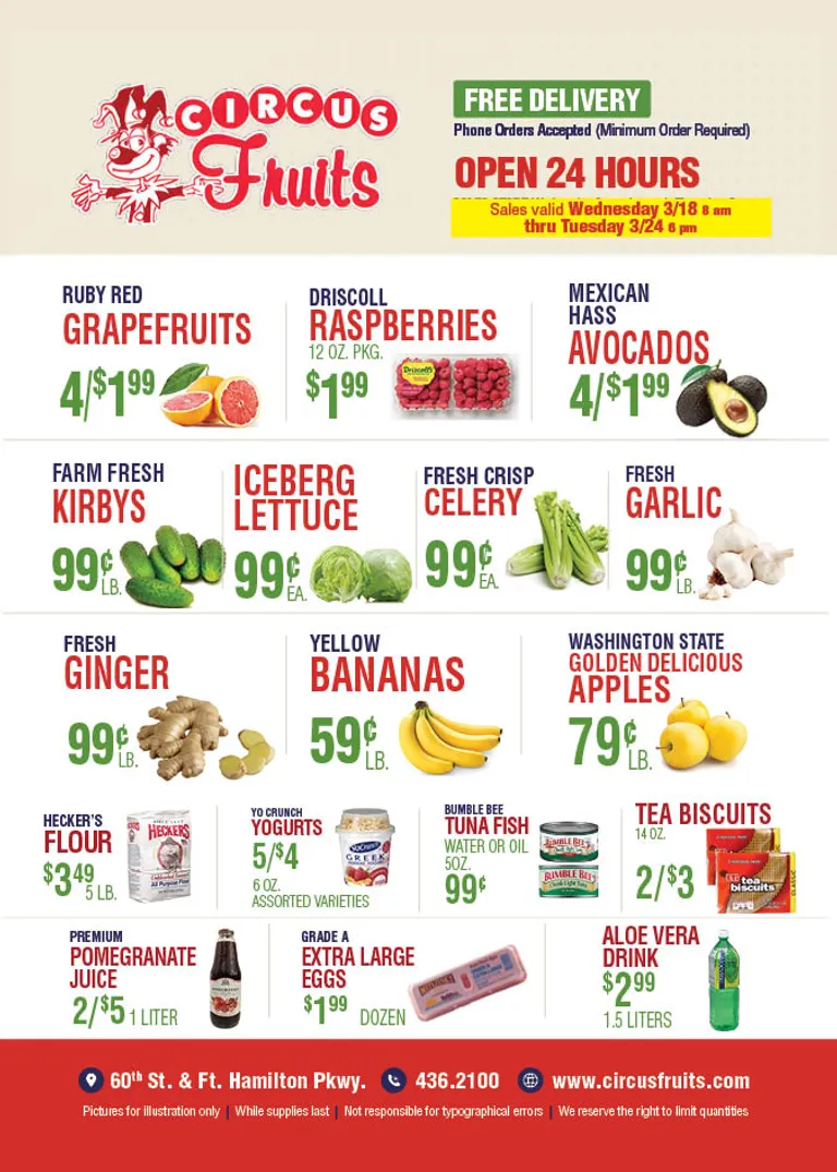 You’re viewing the Circus Fruits weekly ad, valid from 03/18/2026 to 03/24/2026. Visit our website regularly to stay up to date with the latest deals and promotions from your favorite stores.