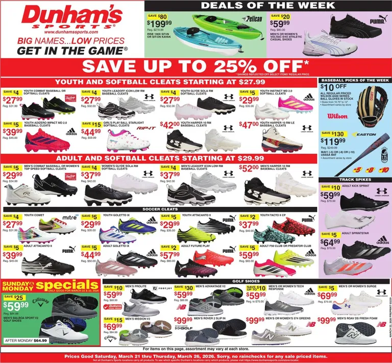 You’re viewing the Dunham's Sports weekly ad, valid from 03/21/2026 to 03/26/2026. Visit our website regularly to stay up to date with the latest deals and promotions from your favorite stores.
