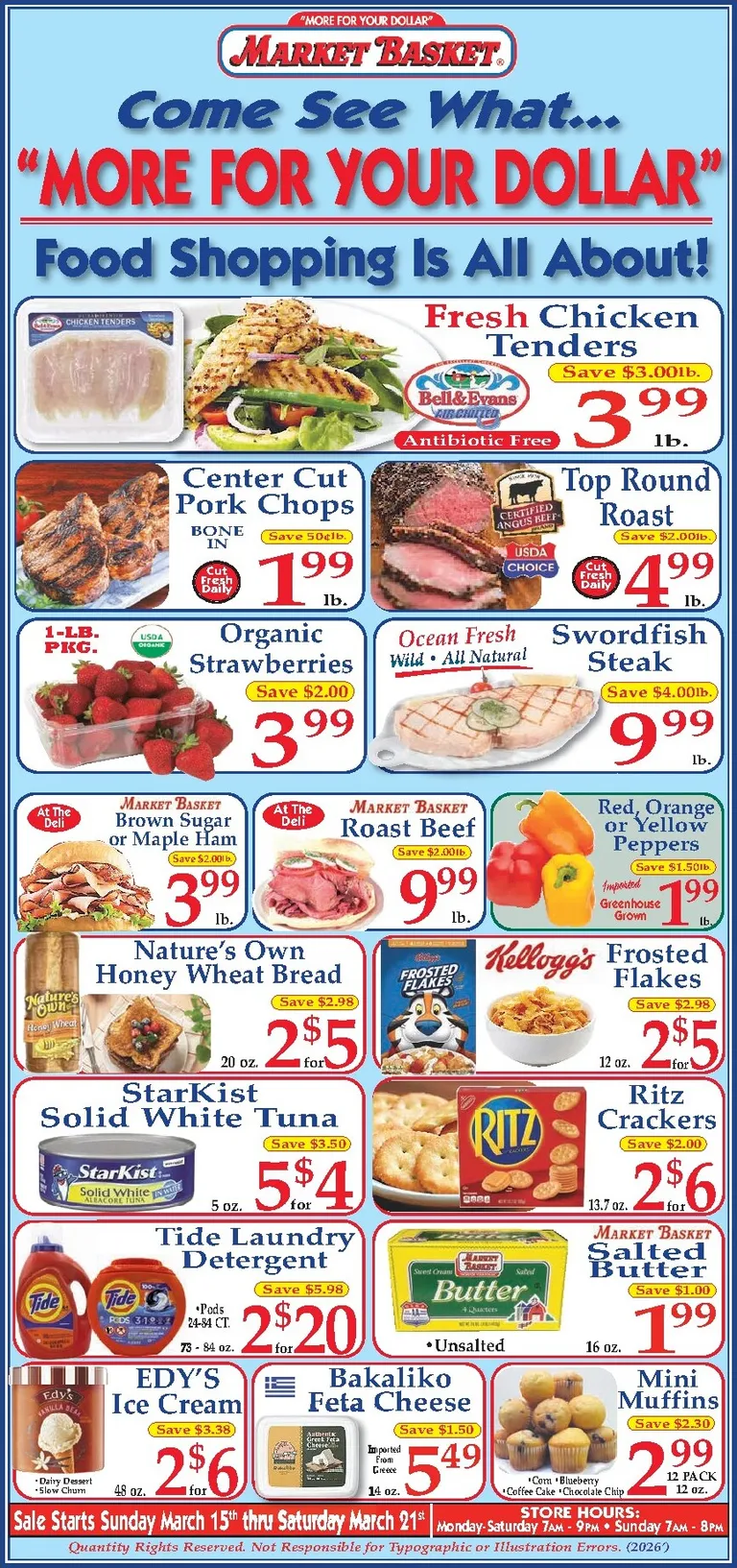 You’re viewing the Market Basket weekly ad, valid from 03/15/2026 to 03/21/2026. Visit our website regularly to stay up to date with the latest deals and promotions from your favorite stores.