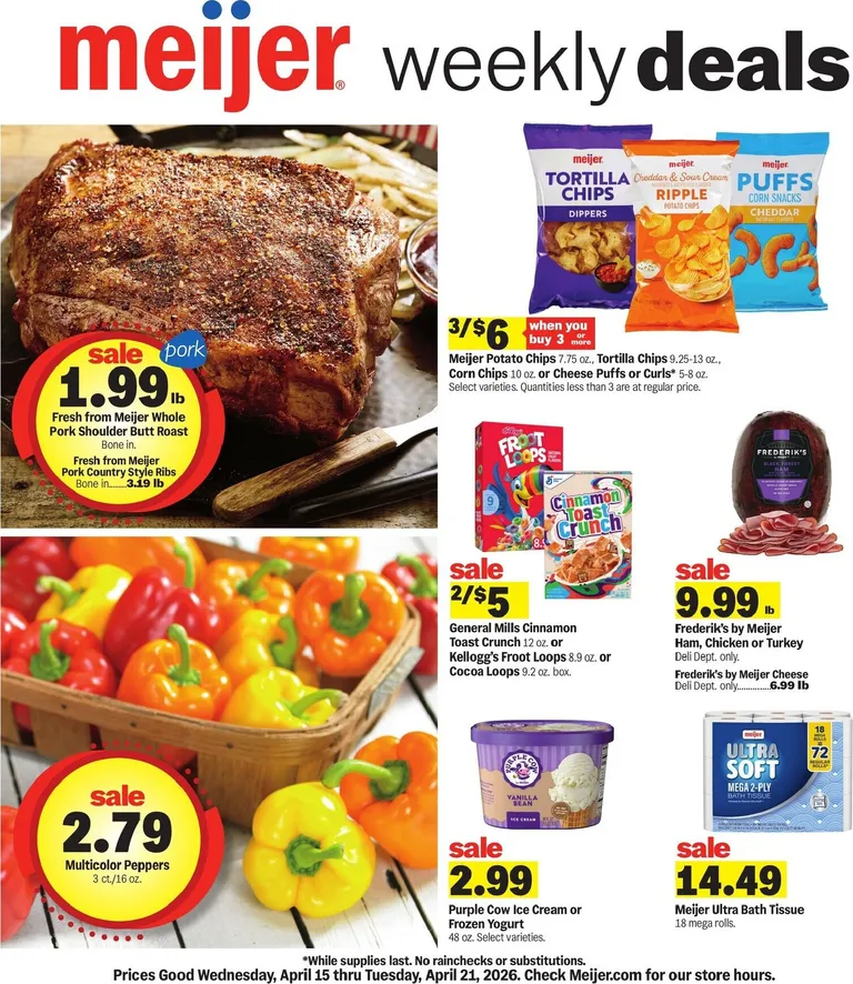 You’re viewing the Meijer weekly ad, valid from 04/15/2026 to 04/21/2026. Visit our website regularly to stay up to date with the latest deals and promotions from your favorite stores.