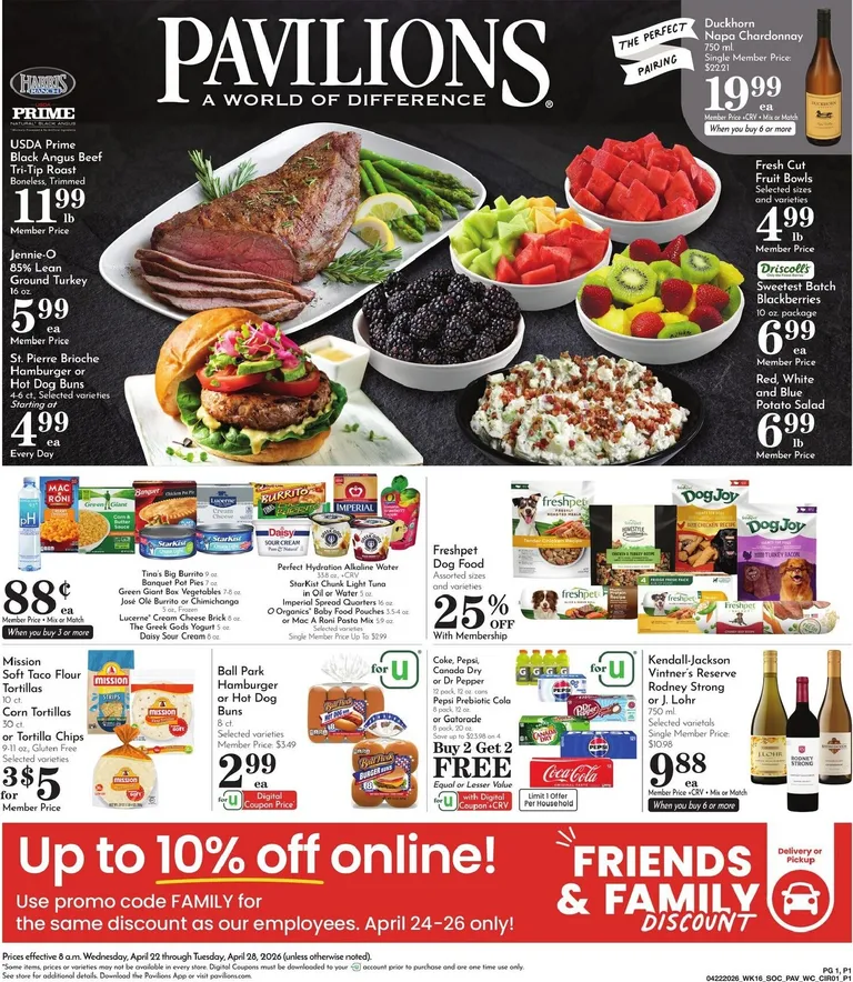 You’re viewing the Pavilions weekly ad, valid from 04/22/2026 to 04/28/2026. Visit our website regularly to stay up to date with the latest deals and promotions from your favorite stores.