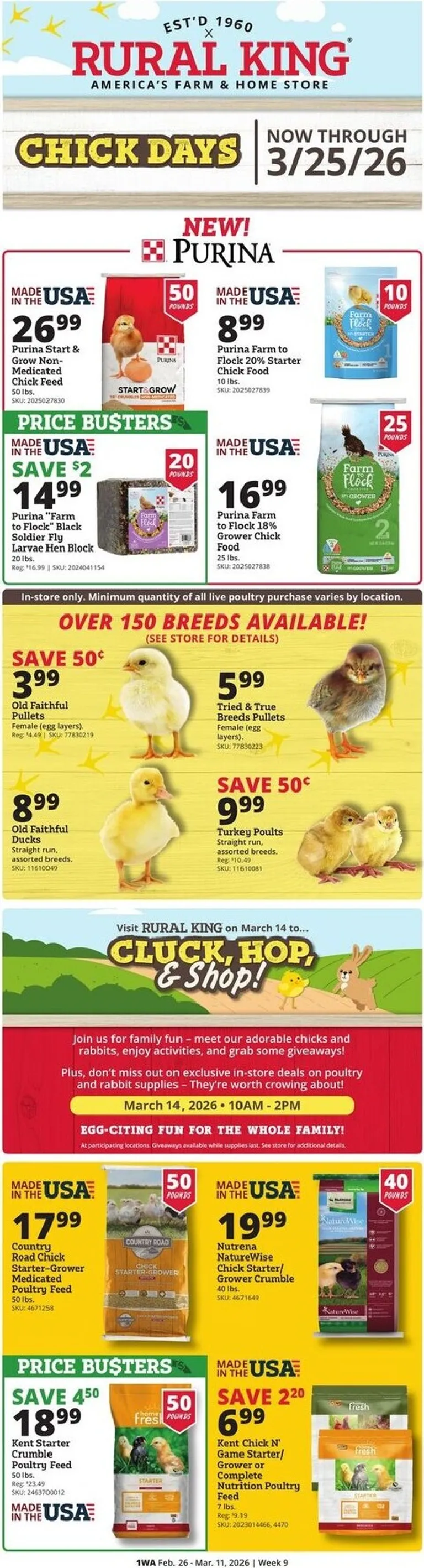 You’re viewing the Rural King weekly ad, valid from 02/26/2026 to 03/25/2026. Visit our website regularly to stay up to date with the latest deals and promotions from your favorite stores.
