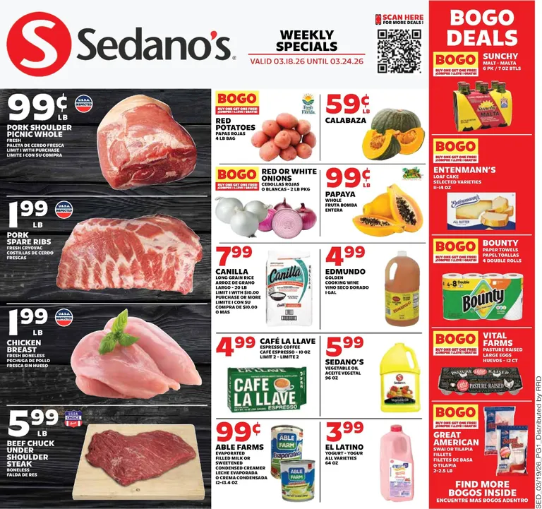 You’re viewing the Sedano's weekly ad, valid from 03/18/2026 to 03/24/2026. Visit our website regularly to stay up to date with the latest deals and promotions from your favorite stores.