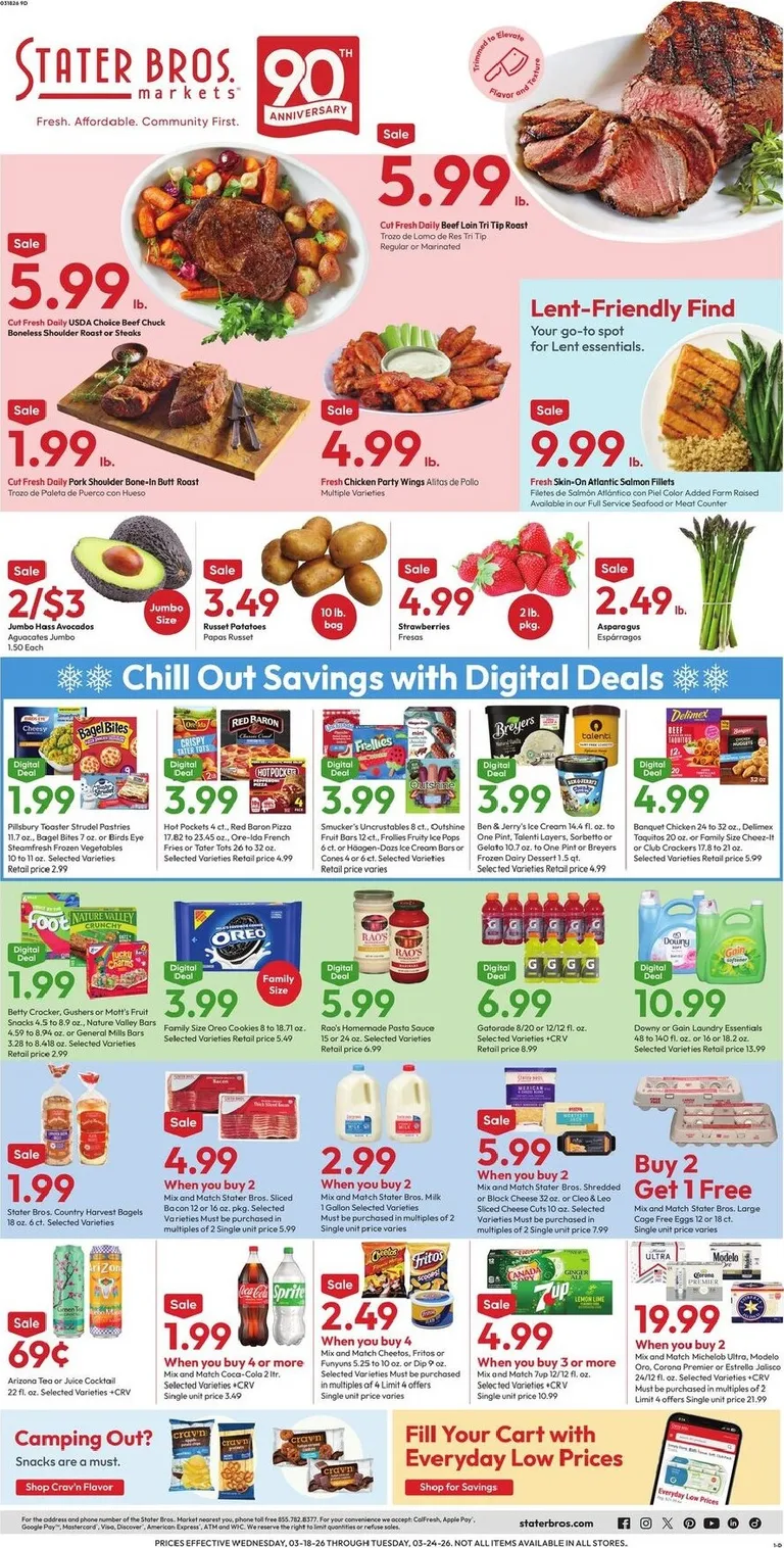 You’re viewing the Stater Bros. weekly ad, valid from 03/18/2026 to 03/24/2026. Visit our website regularly to stay up to date with the latest deals and promotions from your favorite stores.