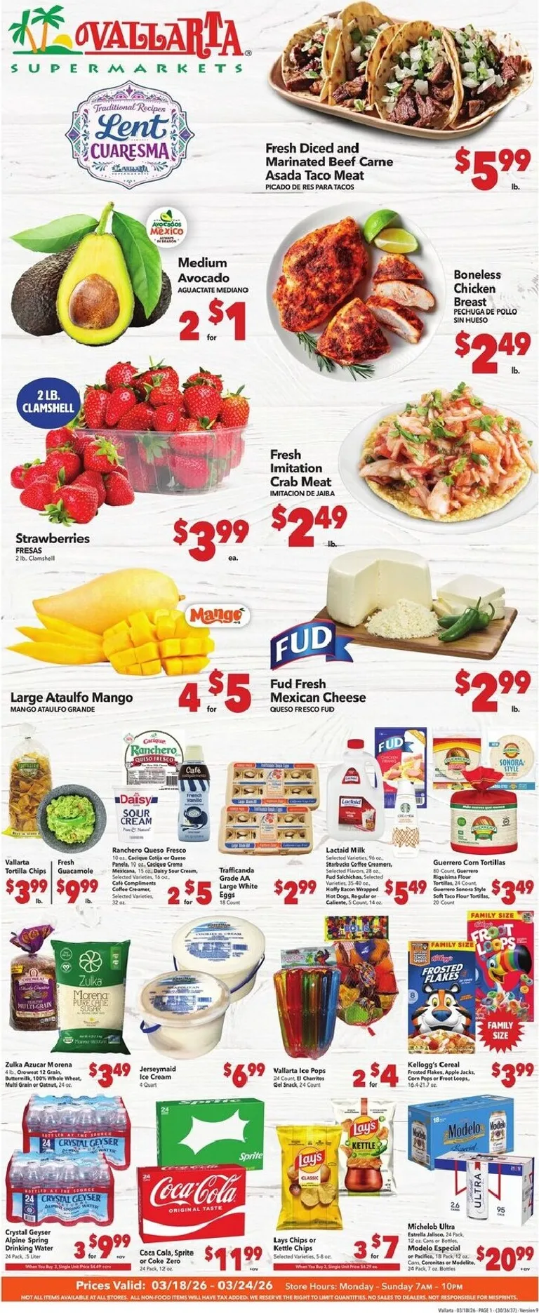 You’re viewing the Vallarta weekly ad, valid from 03/18/2026 to 03/24/2026. Visit our website regularly to stay up to date with the latest deals and promotions from your favorite stores.
